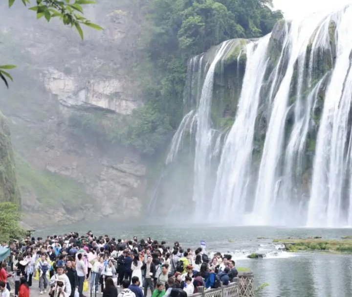 五一假期首日,黄果树景区人流如织。